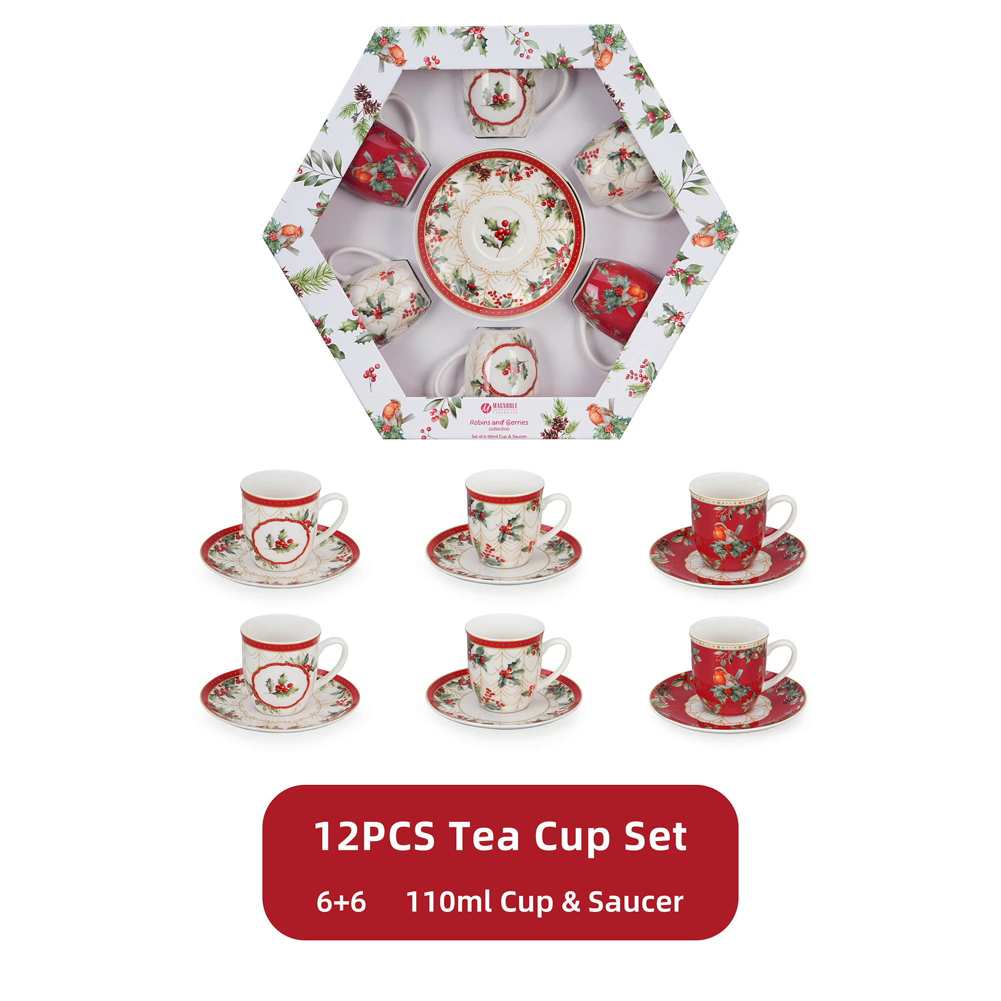 This set includes 6+6pcs 110ML cup & saucer